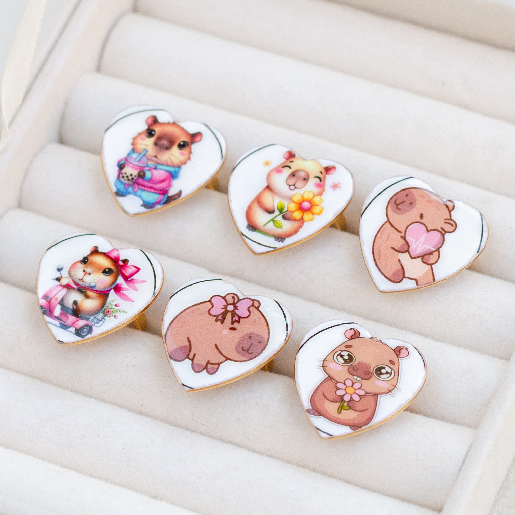 ANILLO DE ACERO DORADO DE CORAZON C/CAPIBARA