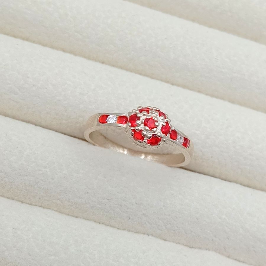 ANILLO DE PLATA FRUTILLA C/ PIEDRITA A LOS COSTADOS