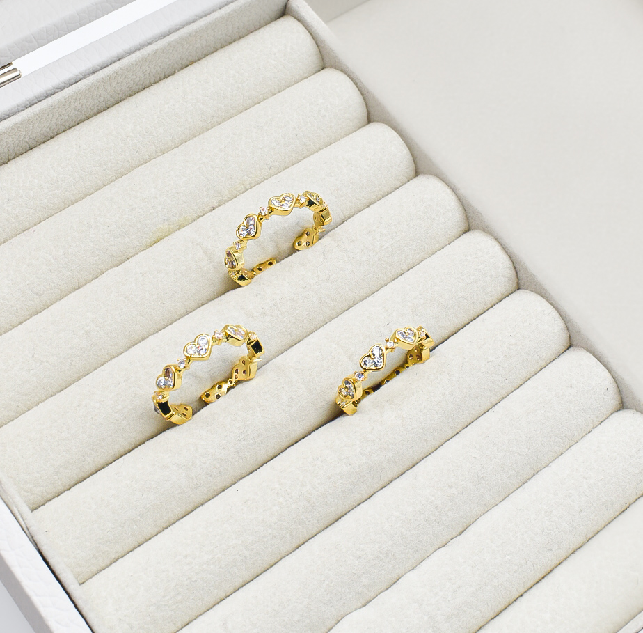 ANILLO DORADO 8 CORAZONES REGULABLES C/STRASS X3