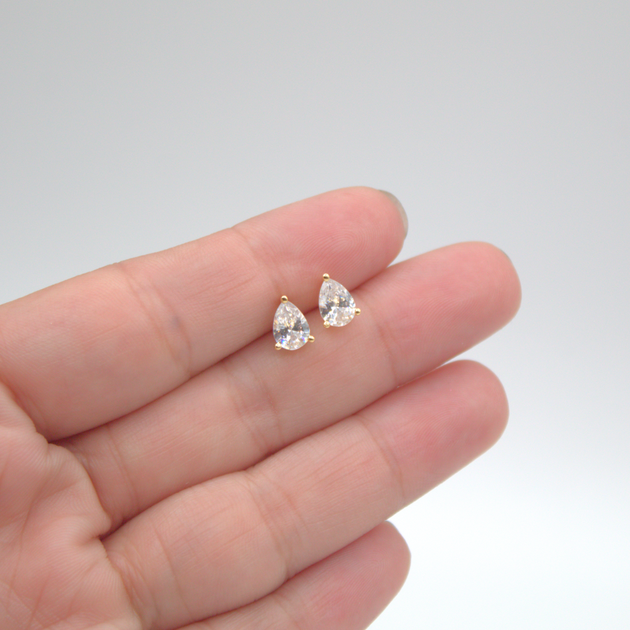 ARO PASANTE BAÑO EN ORO 14K TIPO GOTA EN CUBIC