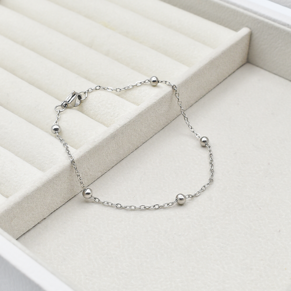 PULSERA DE ACERO ESPEJITO C/BOLITAS